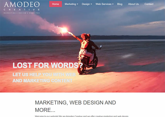 While researching a huge number of websites I noticed that some of the most effective websites communicated what they did by using the menu system to re-emphasise their services. Often menus are busy and key services can be hidden beneath a generic "Services" menu. We determined that the menu would immediately reflect our key areas of Marketing, Design and Websites, even if at the expense of other options where we might need to find a different route to showing them.